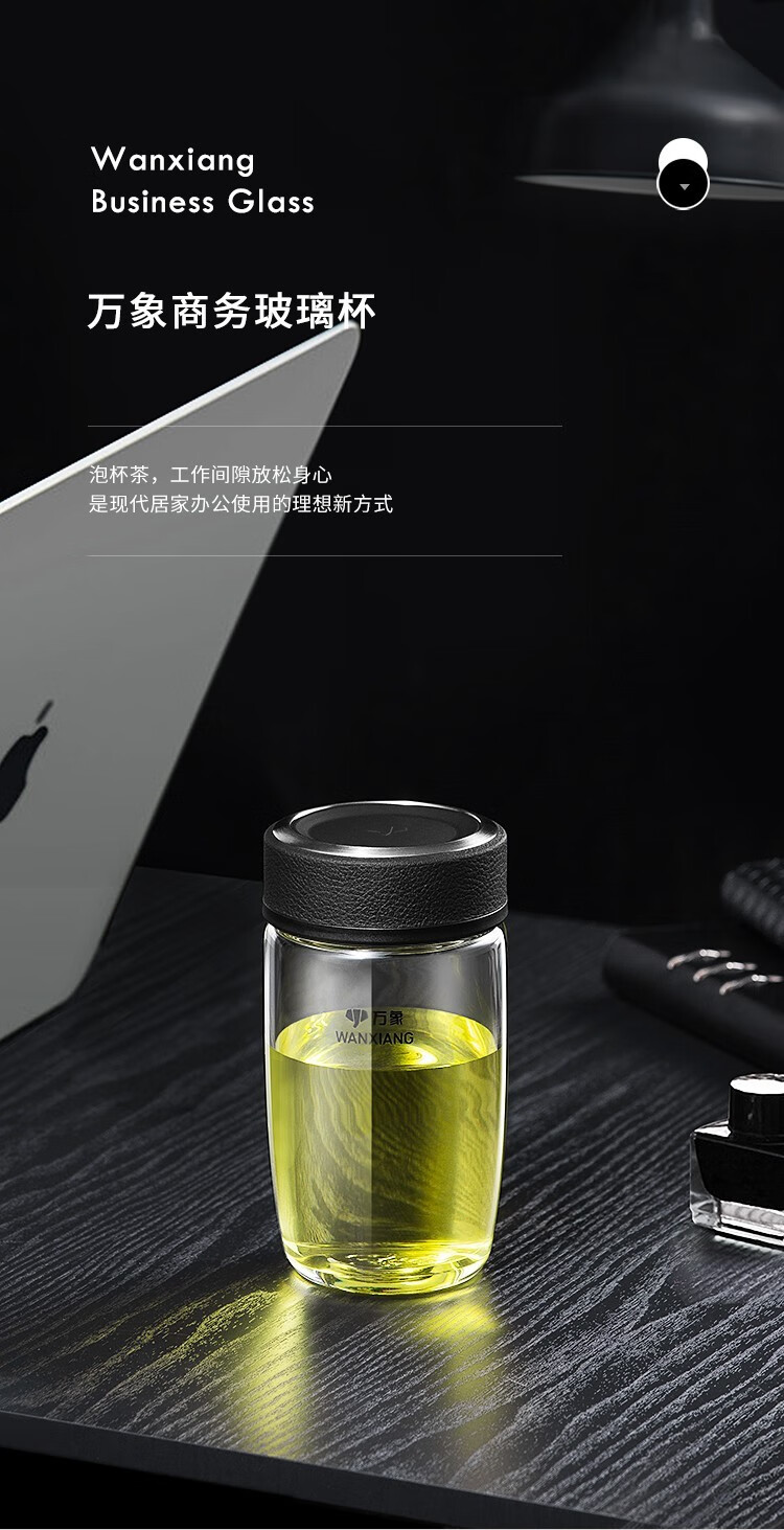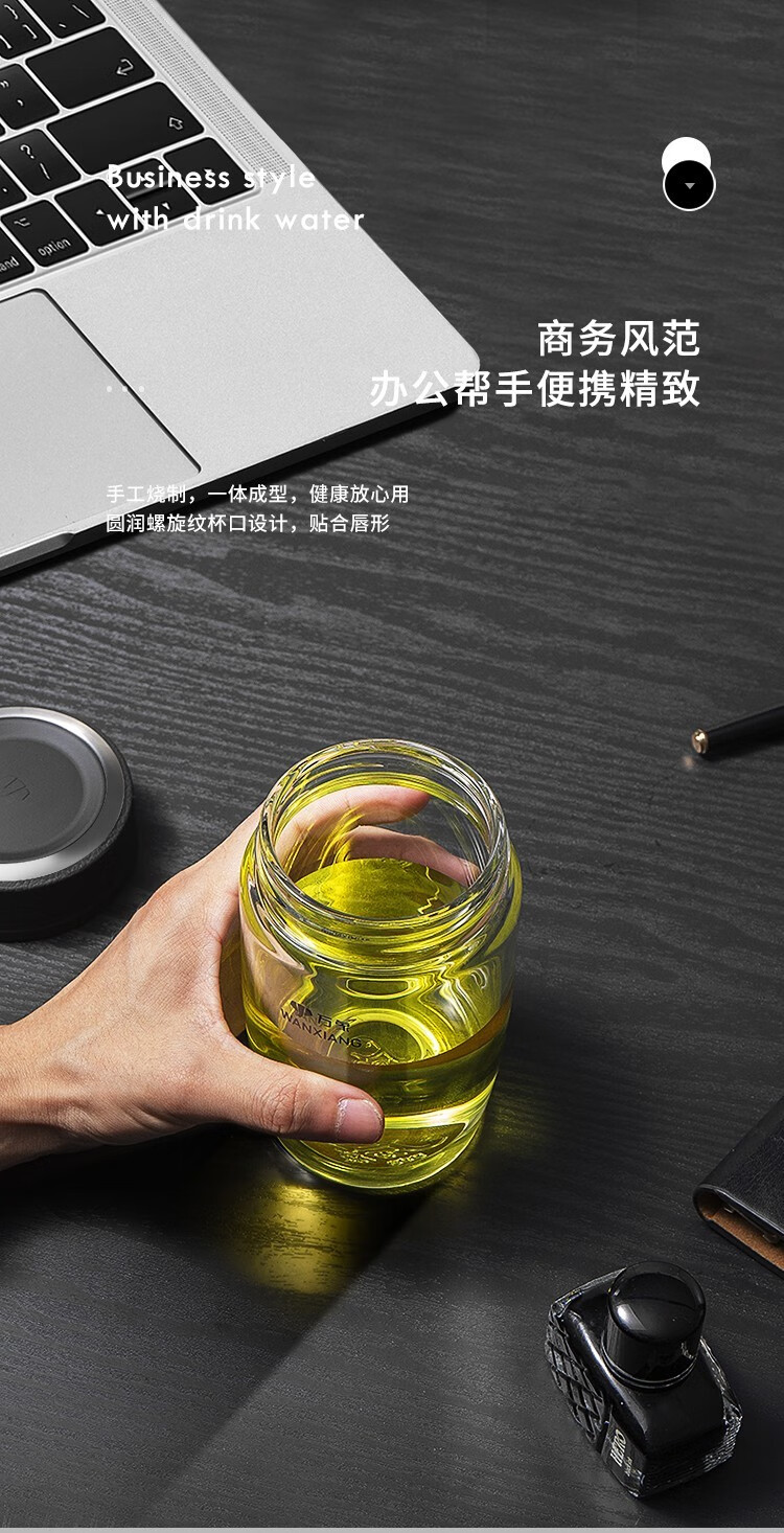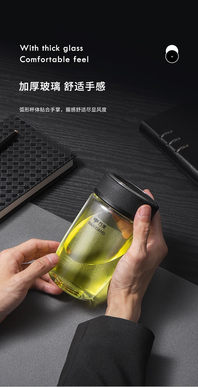 万象单层玻璃杯子女士加厚泡茶杯家用商务办公时尚曲线大肚水杯鹅蛋杯子带滤网口杯 U65-360ml 单层玻璃杯