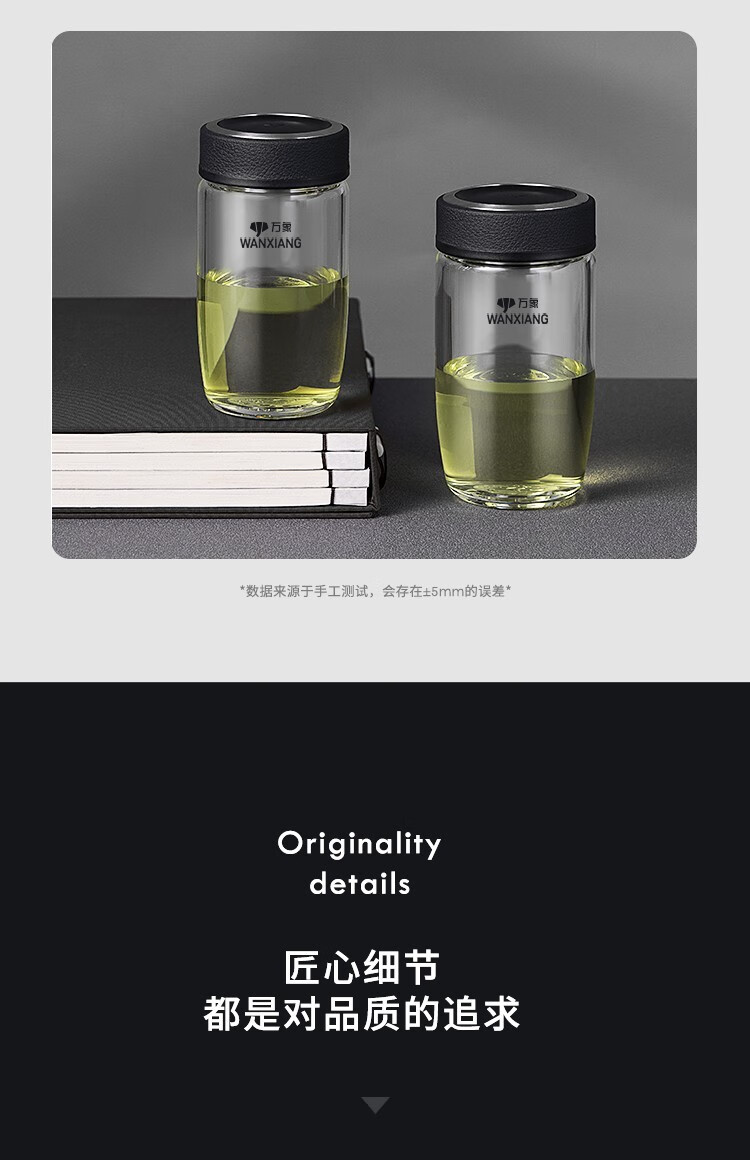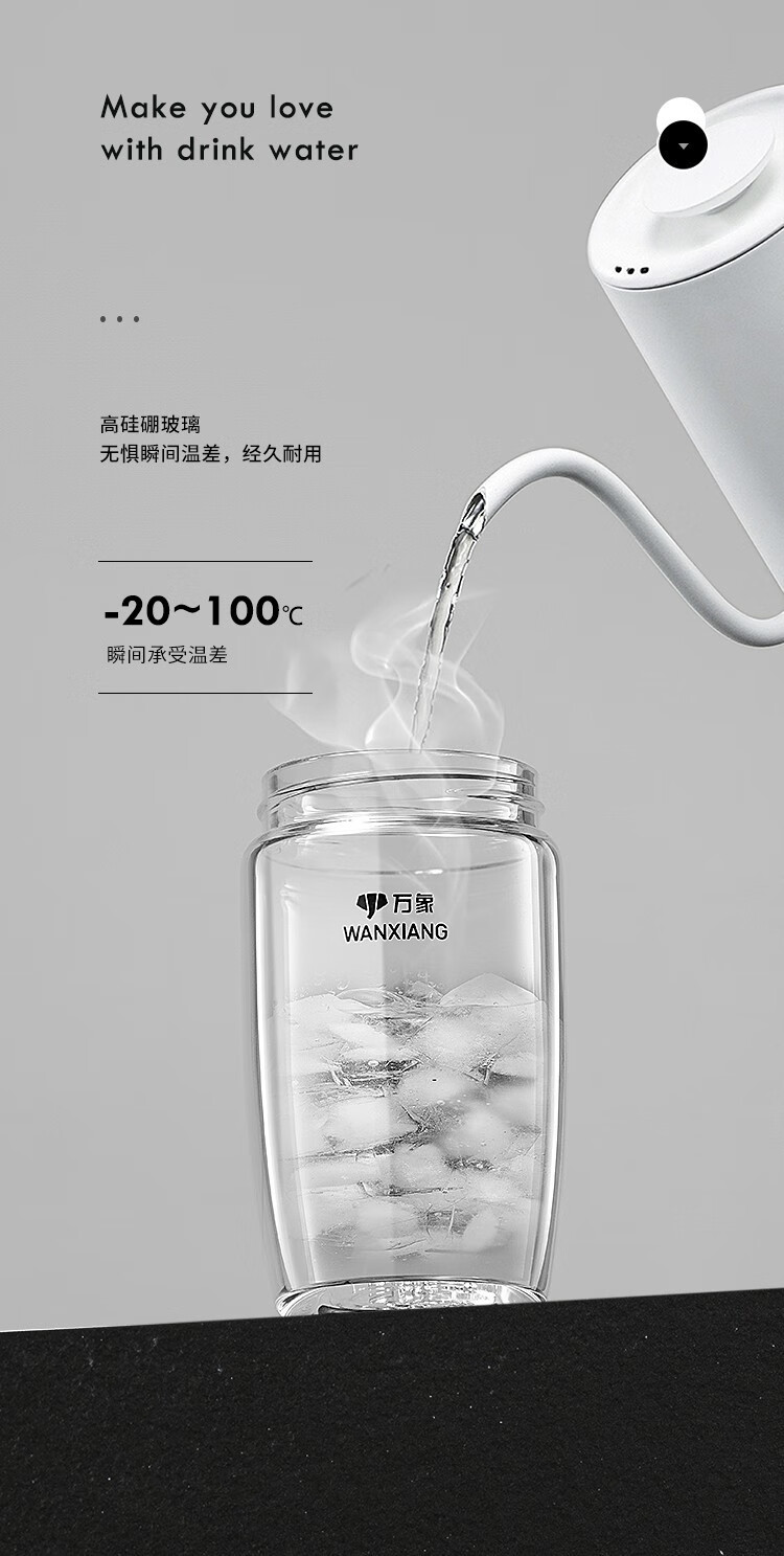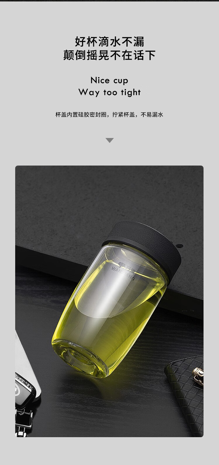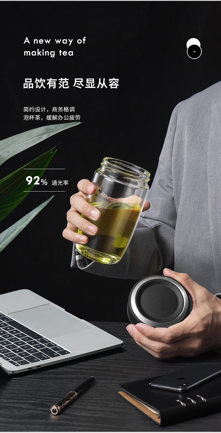 万象单层玻璃杯子女士加厚泡茶杯家用商务办公时尚曲线大肚水杯鹅蛋杯子带滤网口杯 U65-360ml 单层玻璃杯