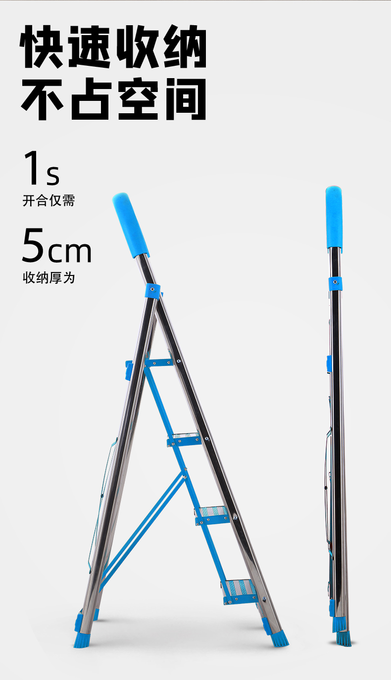 不锈钢梯子家用折叠人字梯五步加厚室内伸缩古达多功能铝合金家庭合梯 不锈钢防滑纹三步梯橙色